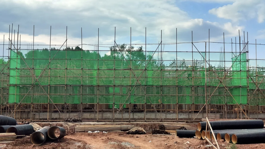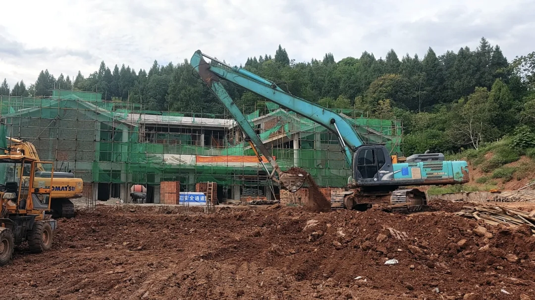 目前,工人们正紧张有序地进行房建作业,挖掘机、推土机等重型机械轰鸣运转,往来穿梭,现场一派热火朝天的建设景象。