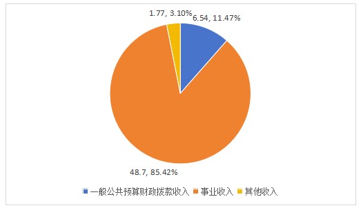 2024年度本年收入合计57.01万元,其中:一般公共预算财政拨款收入6.54万元,占11.47%;事业收入48.70万元,占85.42%;其他收入1.77万元,占3.10%。