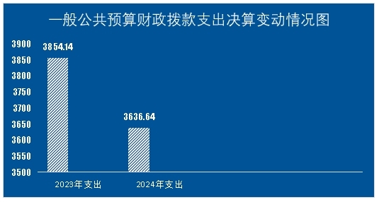 2024年度一般公共预算支出决算数为3636.64,完成预算100%。其中: