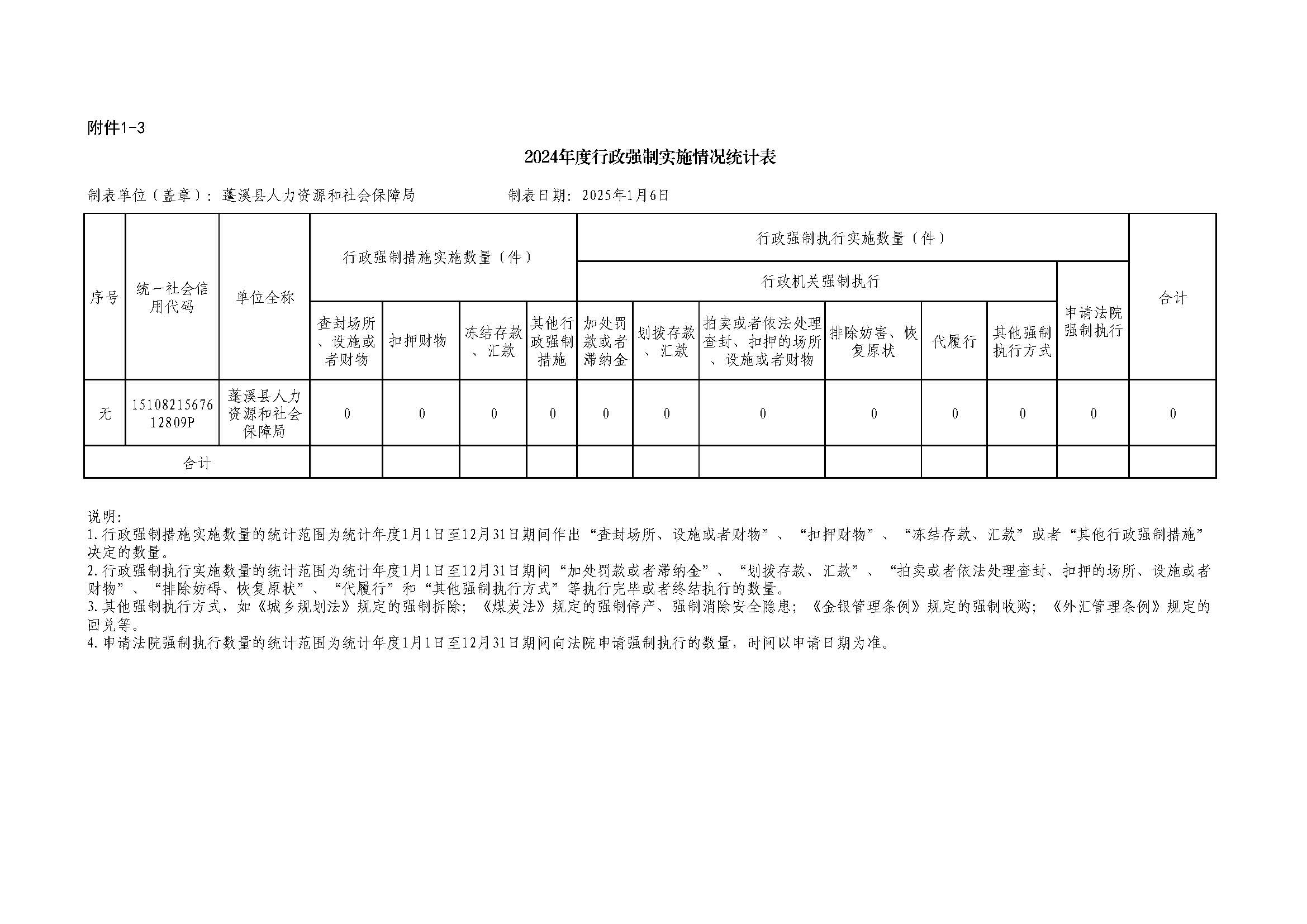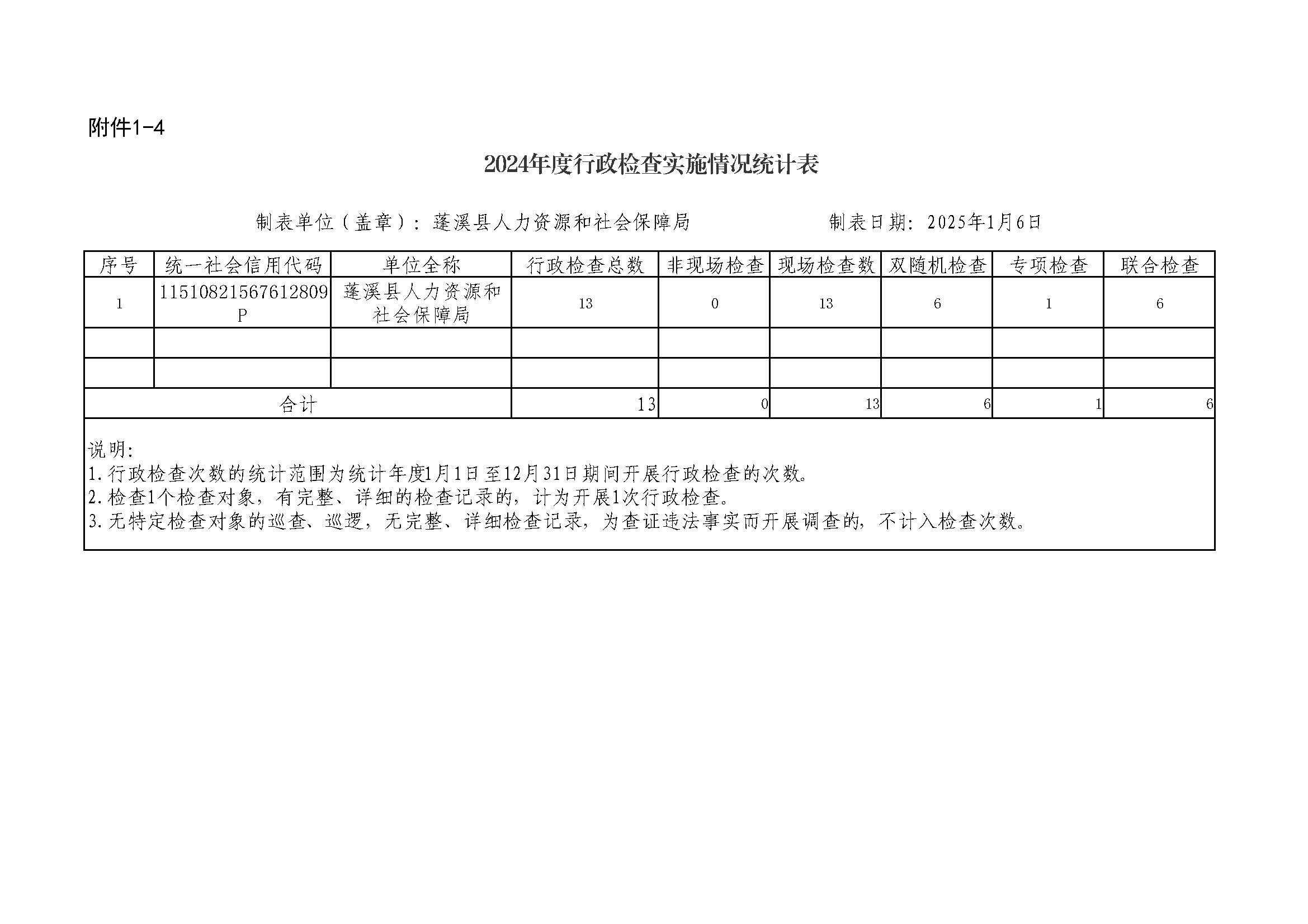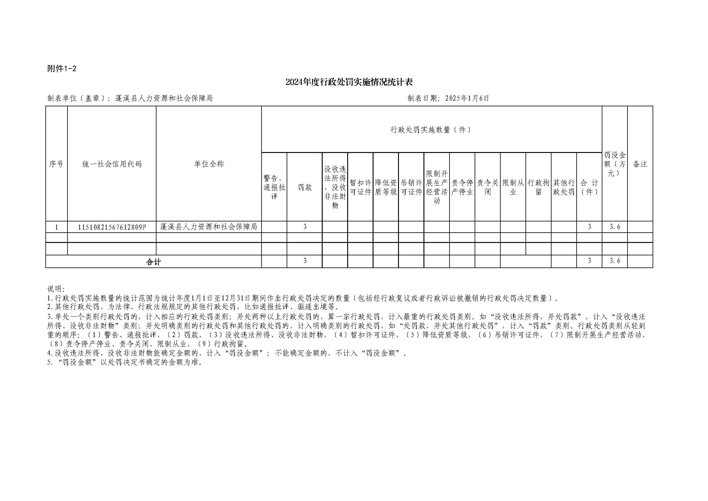 蓬溪县人力资源和社会保障局2024年度行政许可、行政处罚、行政强制、行政检查实施情况公示