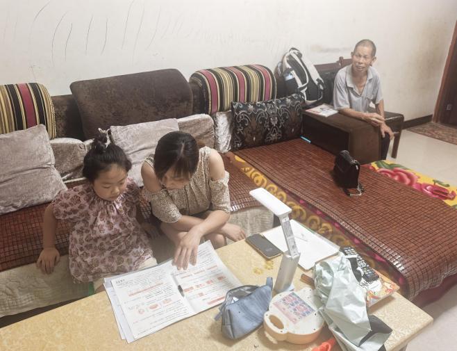 暑期也要关注留守孩子的学业情况,所有家访老师所到之处都认真检查学生暑期学习计划制定和执行情况,了解作业进度和完成情况,为学生提供个性化的学习方法建议、假期整本书阅读指导和兴趣拓展建议。帮助学生解决学业上遇到的难题,唐小惠老师在家访时发现蒲欣妍同学在数学学习上遇到困难,便根据其学习情况,制定了专属的学习计划,并推荐了一些线上学习资源,还联系了火车站社区的大学生志愿者为其进行辅导。