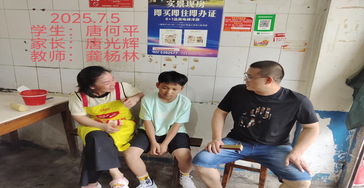 老师们在家访过程中向监护人全面反馈学生在校期间的思想品德、学业水平、行为习惯、人际交往等方面的表现,传授科学的家庭教育理念和亲子沟通技巧,指导监护人如何有效关心孩子身心健康,加强亲情联系。同时,详细解读国家及地方的教育资助、营养餐政策、控辍保学、未成年人保护等相关政策。在唐何平同学家中,龚杨林老师向其监护人反馈了孩子在学校的优秀表现,同时针对孩子在家中较为叛逆的情况,与家长共同探讨了有效的沟通方法和教育策略。