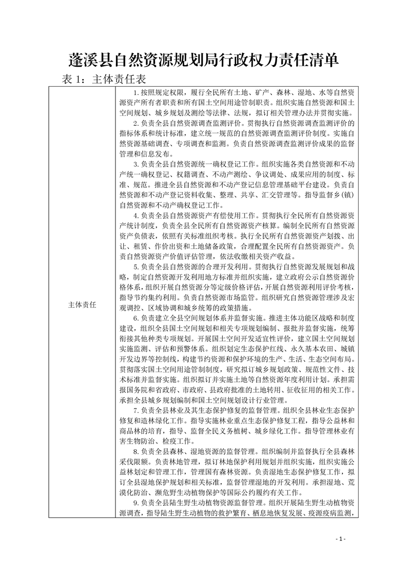 蓬溪县自然资源和规划局行政权力责任清单(2021年5月26日)