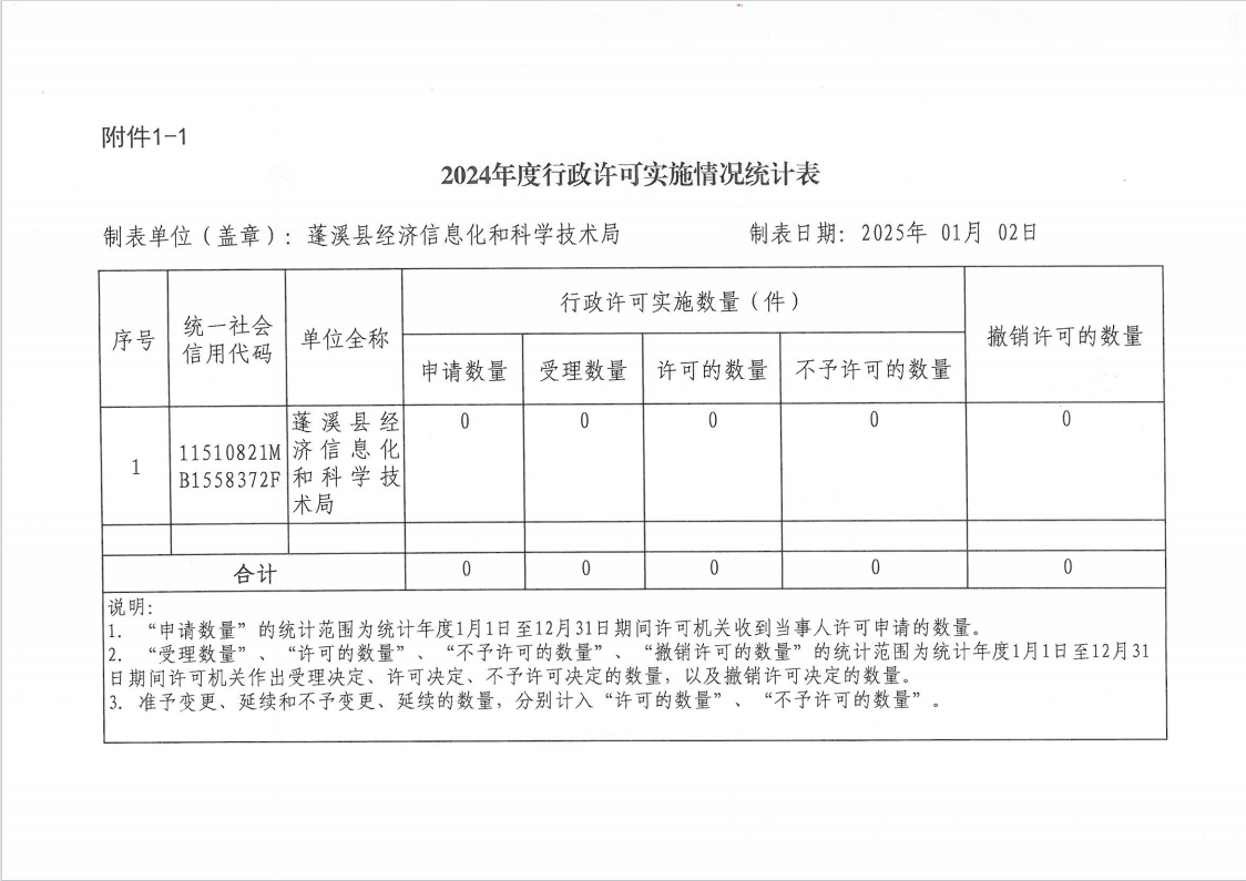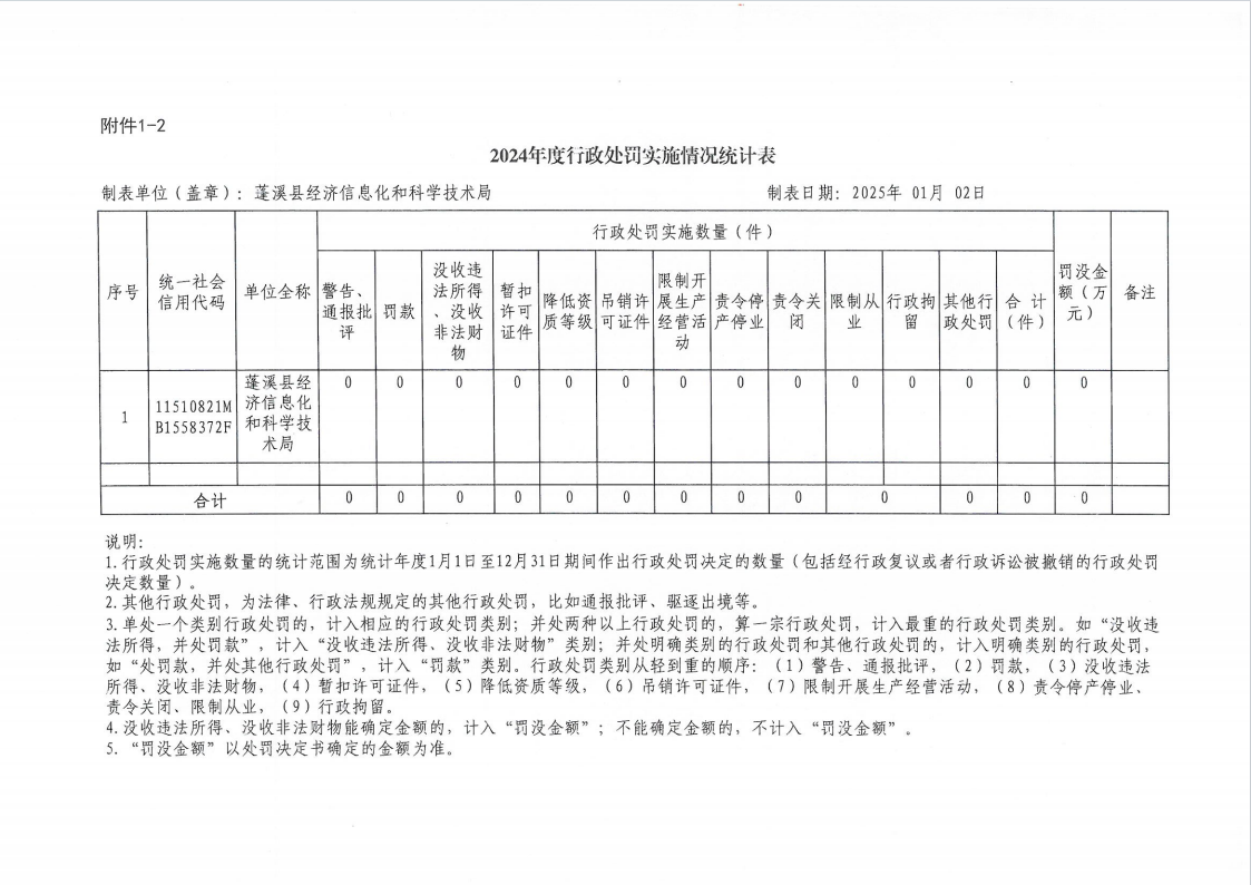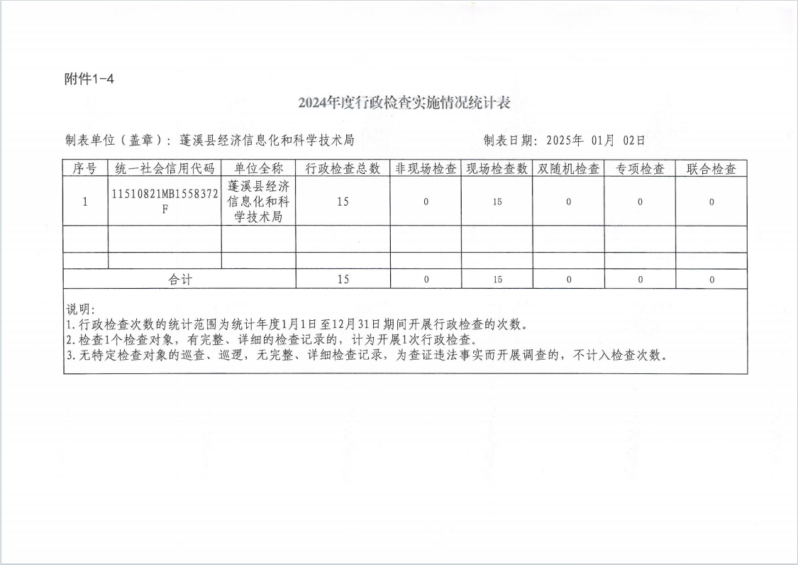 2024年度蓬溪县经科局实施行政许可、行政处罚、行政强制和行政检查等情况