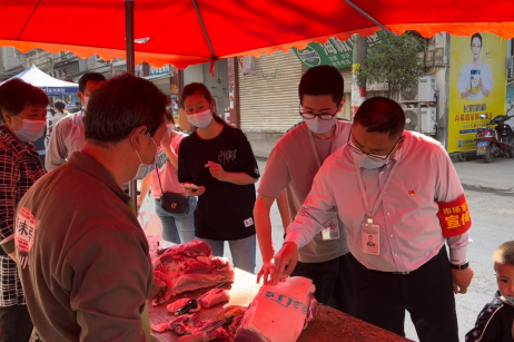 检查组实地查看大石镇核酸检测点及镇农贸市场,现场查看核酸检测点落实疫情防控管理,了解市场肉菜供应,询问进货查验、票据管理、入库登记等台账情况,督促从业人员严格执行健康筛查和安全管理。