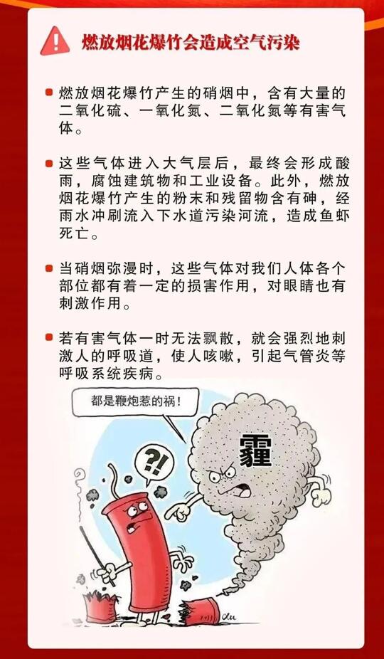禁放的是烟花,绽放的是文明。在此,蓬溪县综合行政执法局呼吁广大市民朋友们,争做禁燃禁放烟花爆竹的实践者、监督者和宣传者,齐心协力、团结一致,消除大气和环境污染,形成绿色文明过节新风尚,共同守护城市的碧水蓝天。