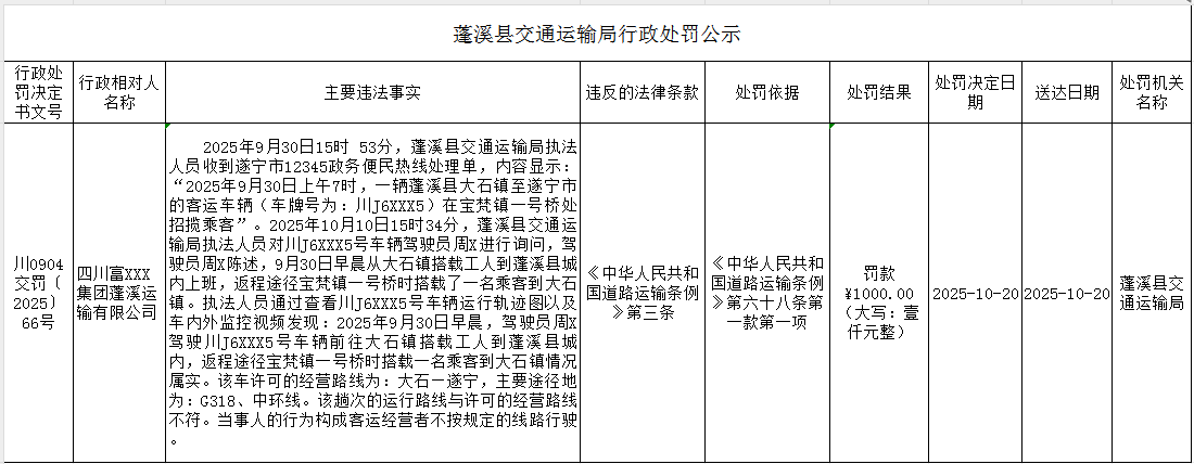 蓬溪县交通运输局行政处罚公示