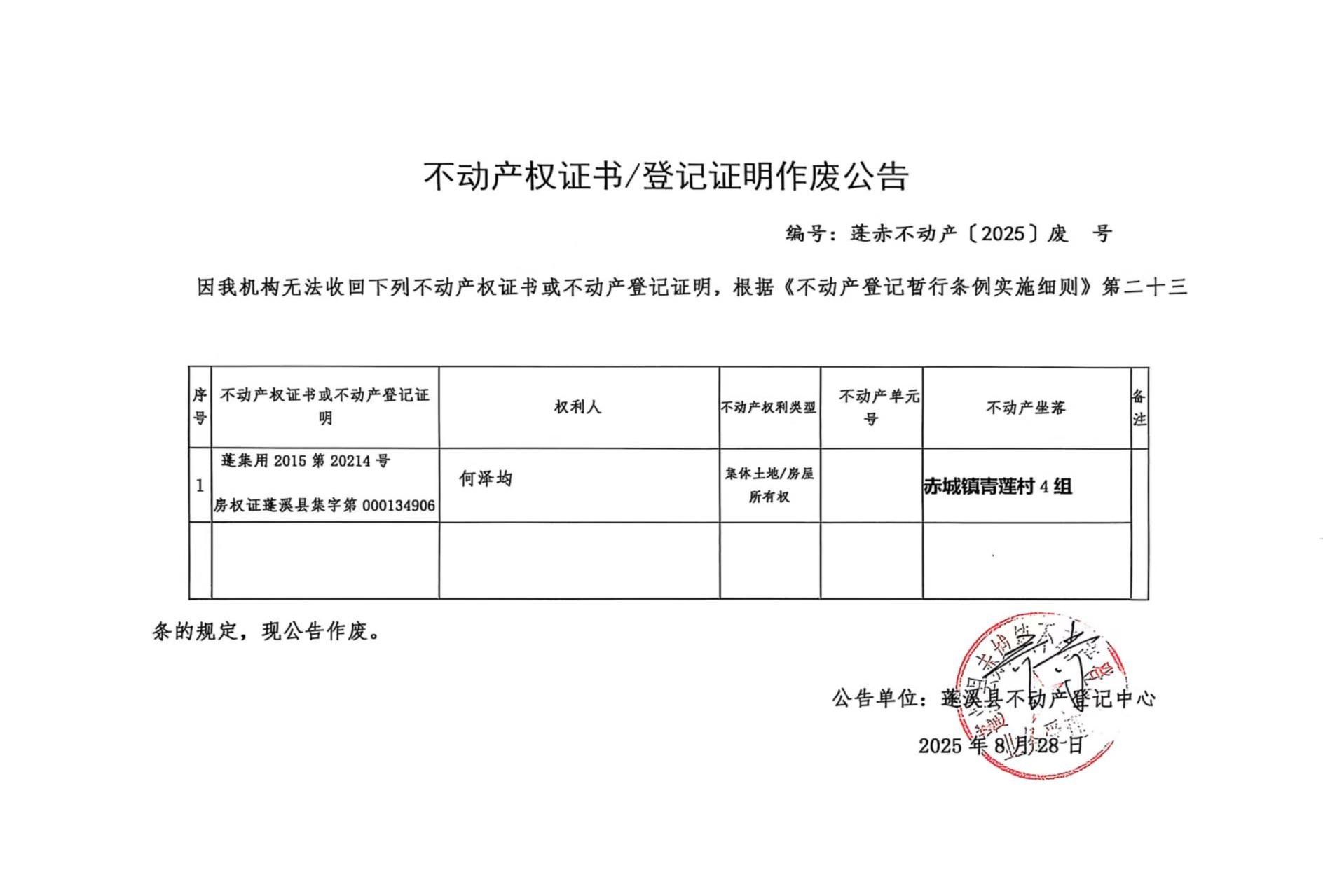 作废公告(何泽均)