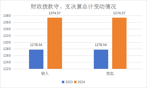 2024年度财政拨款收、支总计均为1374.57万元。与2023年度相比,财政拨款收、支总计各增加96.03万元,增长7.51%。主要变动原因是增加了天福镇三合村基层综合治理服务站、天福镇茶房沟村组织生活体验馆暨党性教育实训站、蓬溪县第五次全国经济普查两员补贴、蓬溪县2023年乡镇级“五经普”考核奖补资金、项目经费、天福镇信访维稳专项经费、村级组织活动阵地建设、创建六好基层关工委经费、第五次经济普查补助(第三批)、第五次全国经济普查奖补资金等项目。