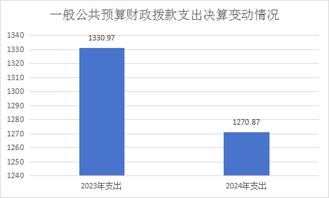 2024年度一般公共预算财政拨款支出1330.97万元,占本年支出合计的96.83%。与2023年度相比,一般公共预算财政拨款支出增加60.1万元,增长4.73%。主要变动原因是增加了天福镇三合村基层综合治理服务站、天福镇茶房沟村组织生活体验馆暨党性教育实训站、蓬溪县第五次全国经济普查两员补贴、蓬溪县2023年乡镇级“五经普”考核奖补资金、项目经费、天福镇信访维稳专项经费、村级组织活动阵地建设、创建六好基层关工委经费、第五次经济普查补助(第三批)、第五次全国经济普查奖补资金等项目。
