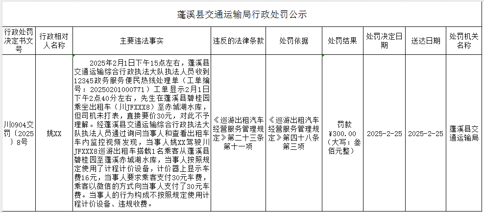 蓬溪县交通运输局行政处罚公示