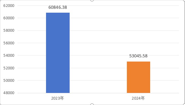 2024年度收、支总计均为53045.58万元。与2023年度相比,收、支总计各减少7800.80万元,下降12.82%。主要变动原因是疫情防控等专项资金减少。