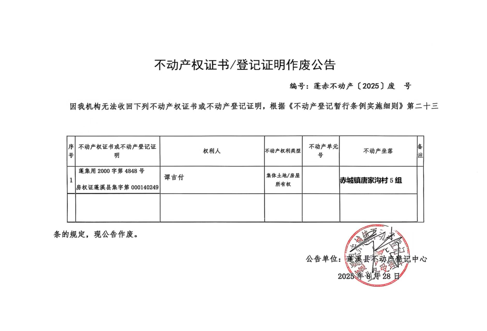 作废公告(谭吉付)