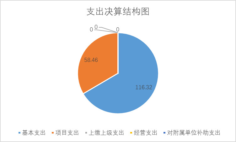 2024年度本年支出合计174.78万元,其中:基本支出116.32万元,占66.55;项目支出58.46万元,占33.45%;上缴上级支出0万元,占0%;经营支出0万元,占0%;对附属单位补助支出0万元,占0%。