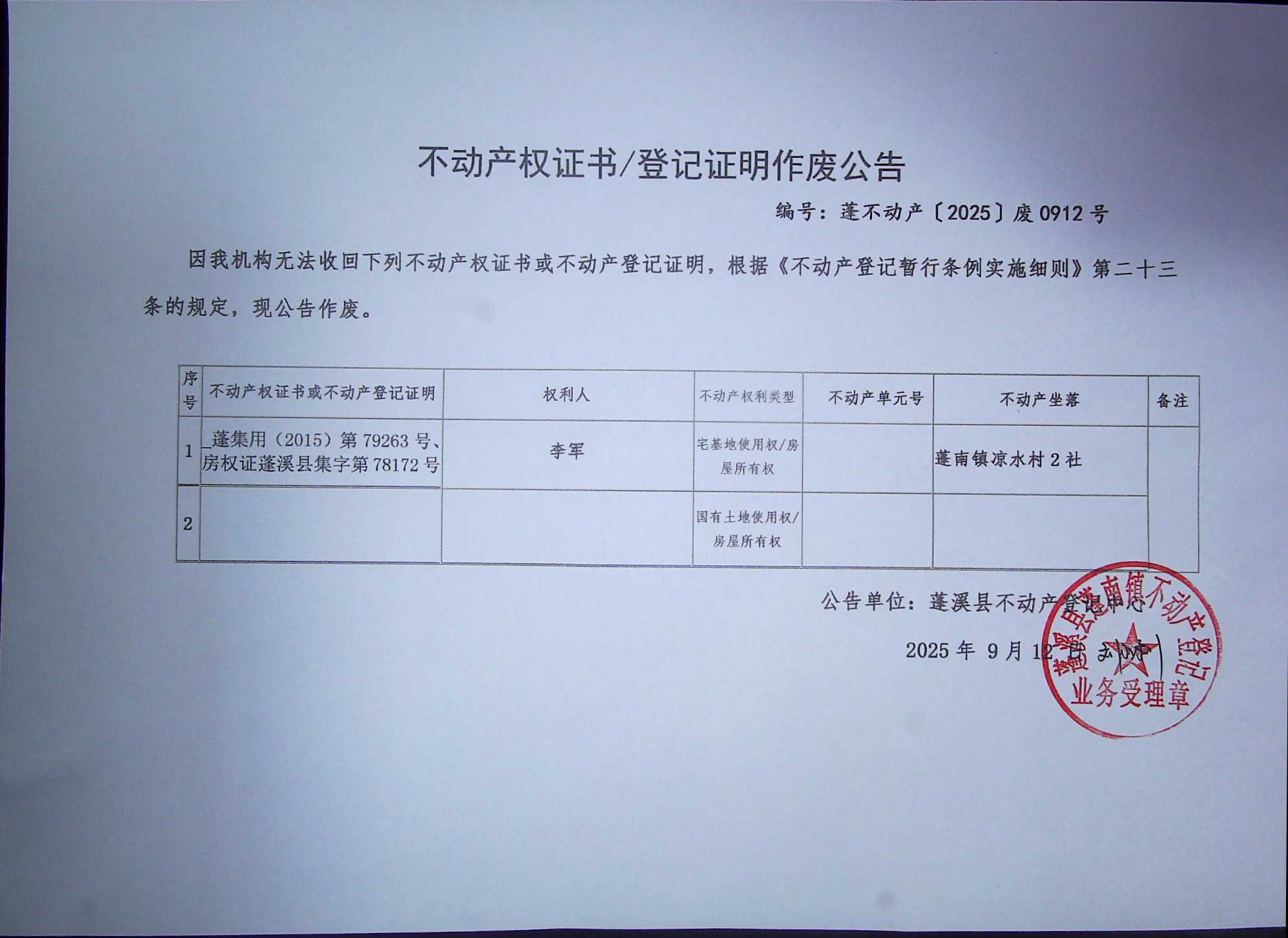 来源:蓬溪县不动产登记中心