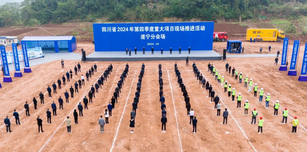 10月8日,四川省2024年第四季度重大项目现场推进活动遂宁分会场活动在蓬溪县举行。市委书记严卫东出席活动并宣布建设启动。市委副书记、市长刘会英出席活动并讲话。市人大常委会主任周霖临,市政协主席杨军,市委副书记、遂潼园区党委书记景临出席活动。