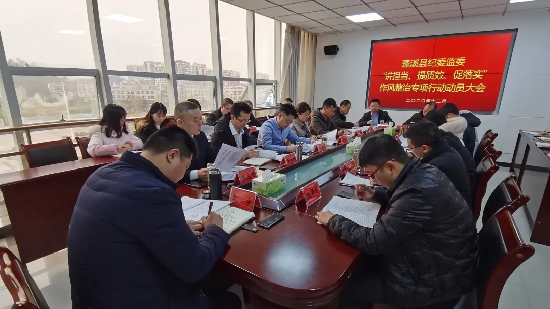 为贯彻落实全面从严治党要求,扎实推进省委第十巡视组反馈意见整改工作,持续深化党的作风建设,加快推动党的十九届五中全会精神、省委十一届八次全会精神和市委、县委全会各项决策部署落地见效,近日,县纪委监委机关召开“讲担当、提质效、促落实”作风整治专项行动动员大会,会议通报了市、县近年来查办的作风建设方面的典型案例并安排部署县纪委监委作风整治专项行动各项工作。