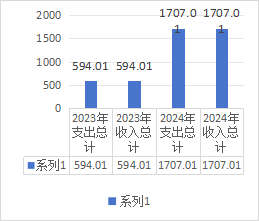 2024年度收、支总计均为1707.01万元。与2023年度相比,收、支总计各增加1113万元,增长187.37%。主要变动原因是政府性基金增加。