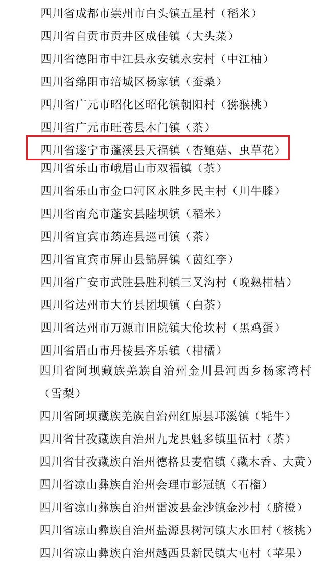 11月2日,记者从四川省农业农村厅获悉,根据《农业农村部办公厅关于开展第十二批全国“一村一品”示范村镇认定工作的通知》,经村镇申报、县市审核、省级推荐、部级专家评审,初步确定北京市平谷区东高村镇崔家庄村等396个村镇为第十二批全国“一村一品”示范村镇,四川24个村镇入选。其中,遂宁市蓬溪县天福镇榜上有名。