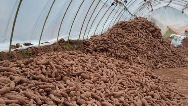 李家强算了一笔经济账:2020年雨水多,平均每亩地收获1400余斤红薯,红薯品相好的做盒装,品相较差的做大宗货批发给农贸市场。均价在3元/斤,2020年开垦的300亩撂荒地,大概收入是126万元。如遇雨水少的年份,一亩地红薯大概收获2000余斤,经济效益会更好。