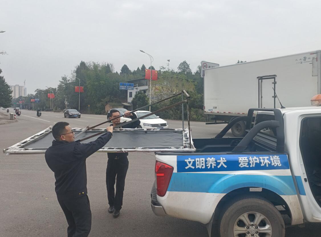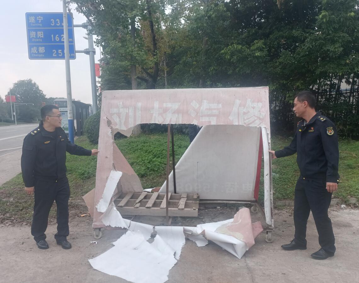 二是打好整治“战役”,提升市容美观度。集中力量开展市容环境提质,整治占道经营300余处,规范非机动车停放300余辆,清理违规广告30余处,拆除违法建构筑物12处,规范施工围挡14处,收容流浪犬4只,深度整治城市顽疾,用最美形象、最亮风景、最好姿态迎接旅发大会在蓬溪县胜利召开,助力蓬溪县成功跻身省级文明城市。