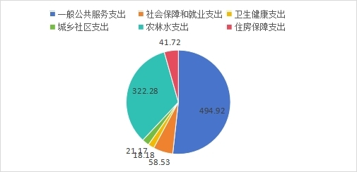 2024年度一般公共预算财政拨款支出956.8万元,主要用于以下方面:一般公共服务支出494.92万元,占51.73%;社会保障和就业支出58.53万元,占6.12%;卫生健康支出18.18万元,占1.9%;城乡社区支出21.17万元,占2.21%;农林水支出322.28万元,占33.68%;住房保障支出41.72万元,占4.36%;