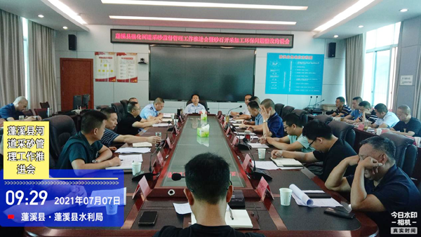 2021年7月7日,蓬溪县水利局在二楼会议室召开了河道采砂监管暨砂石企业环境问题整改约谈会,会议由县人民政府副县长刘定华主持,县砂管办主任、县水利局局长李强、县交运局、县公安局、县财政局、蓬溪生态环境局、沿江乡镇相关负责人参加了会议。蓬溪博瑞实业有限责任公司负责人及各砂石联合体法人作为被约谈对象参加了会议。