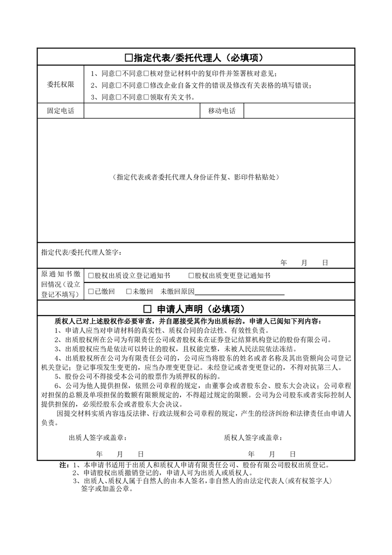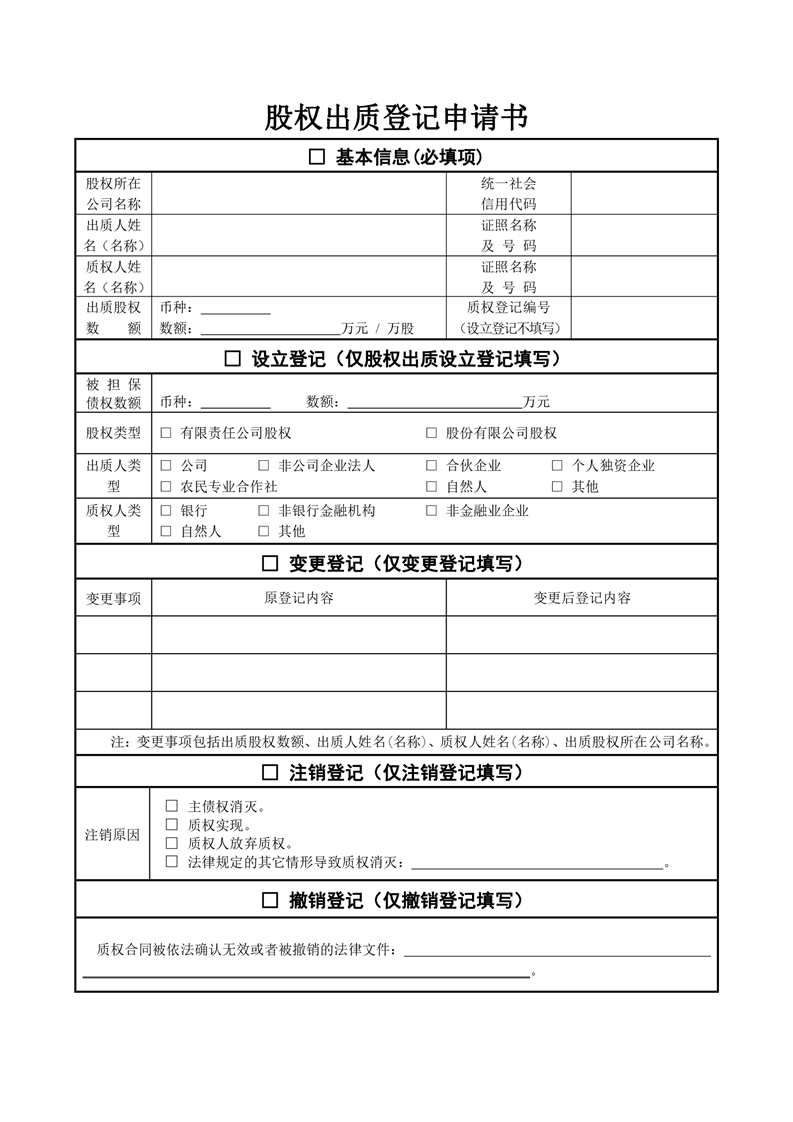 股权出质登记申请书