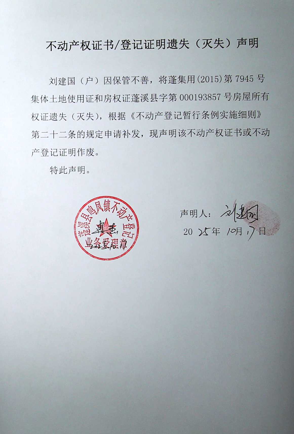 遗失补证公告(刘建国)