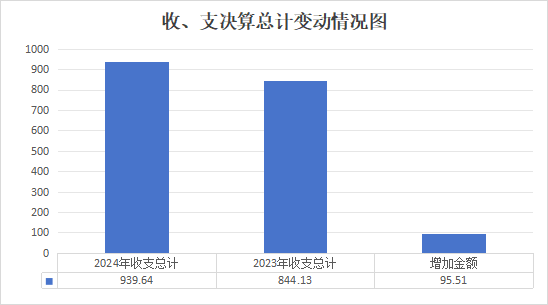 2024年度收、支总计均为939.64万元。与2023年度相比,收、支总计各增加95.51万元,增长11.31%。主要变动原因是增加县乡公路养护专项经费和蓬溪县大石镇天南路绿化栽植项目经费。