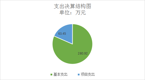 2024年本年支出合计344.37万元,其中:基本支出280.92万元,占81.58%;项目支出63.45万元,占18.42%;上缴上级支出0万元,占0%;经营支出0万元,占0%;对附属单位补助支出0万元,占0%。(图3:支出决算结构图)