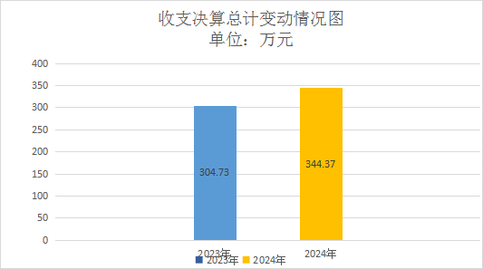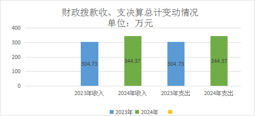 2024年度收、支总计均为344.37万元。与2023年度相比,收、支总计各增加39.64万元,增长13.01%。主要变动原因是增加人员和督查督办工作。