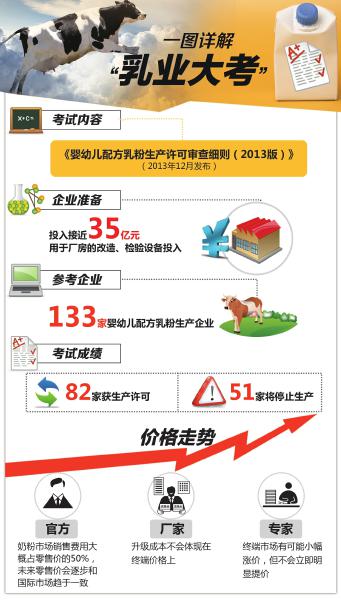 “乳企大考”的背后,是众多乳企斥巨资升级整改,尽管众多乳企纷纷表示不会因此涨价,但业内专家认为,部分企业会将整改所投入的成本转嫁给消费者,但受去年反垄断调查的影响,今年8月以前,国内市场上的奶粉价格会相对稳定。
