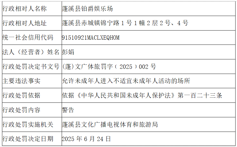 蓬溪县文化广播电视体育和旅游局行政处罚公示