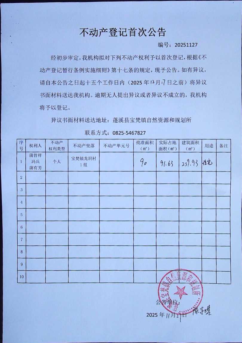 来源:蓬溪县不动产登记中心