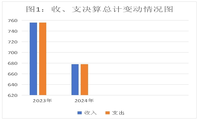 2024年度收、支总计均为678.16万元。与2023年度相比,收、支总计各减少77.69万元,减少10.3%。主要变动原因是师生减少等。