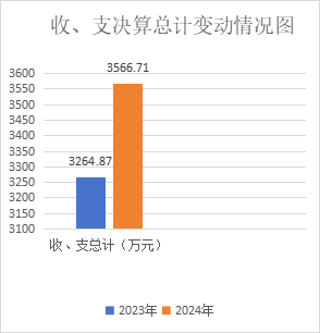2024年度收、支总计均为3566.71万元。与2023年度相比,收、支总计各增加301.84万元,增长9.2%。主要变动原因是一般公共服务支出增加。