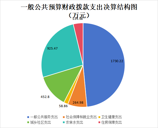 2024年度一般公共预算财政拨款支出3566.71万元,主要用于以下方面:一般公共服务支出1730.22万元,占48.51%;教育支出0万元,占0%;科学技术支出0万元,占0%;文化旅游体育与传媒支出0万元,占0%;社会保障和就业支出264.98万元,占7.42%;卫生健康支出58.86万元,占1.65%;住房保障支出134.38万元,占3.77%;城乡社区支出452.8万元,占12.7%;农林水支出925.47万元,占25.95%。