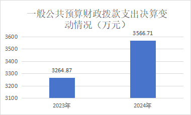 2024年度一般公共预算财政拨款支出3566.71万元,占本年支出合计的100%。与2023年度相比,一般公共预算财政拨款支出增加301.84万元,增长9.2%。主要变动原因是一般公共服务支出增加。