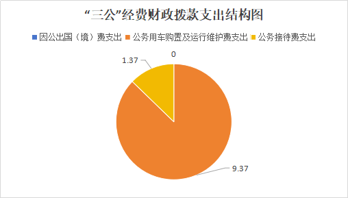 2024年度“三公”经费财政拨款支出决算中,因公出国(境)费支出决算0万元,占0%;公务用车购置及运行维护费支出决算9.37万元,占87.24%;公务接待费支出决算1.37万元,占12.76%。具体情况如下: