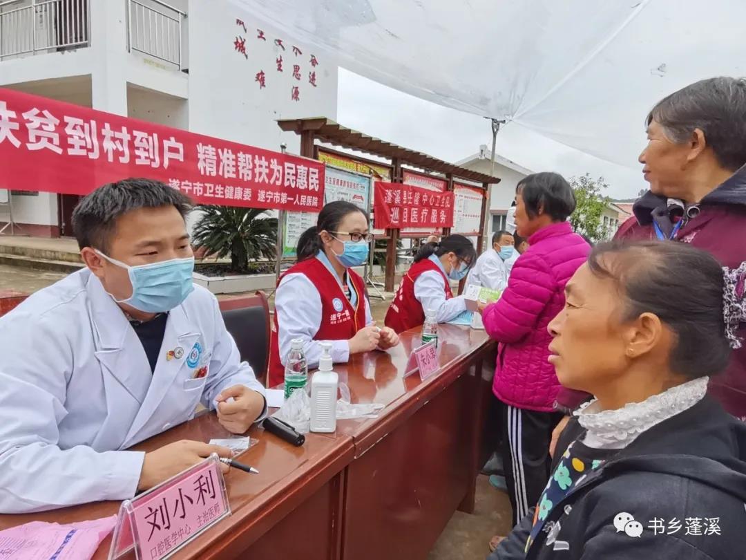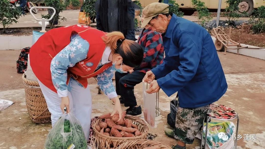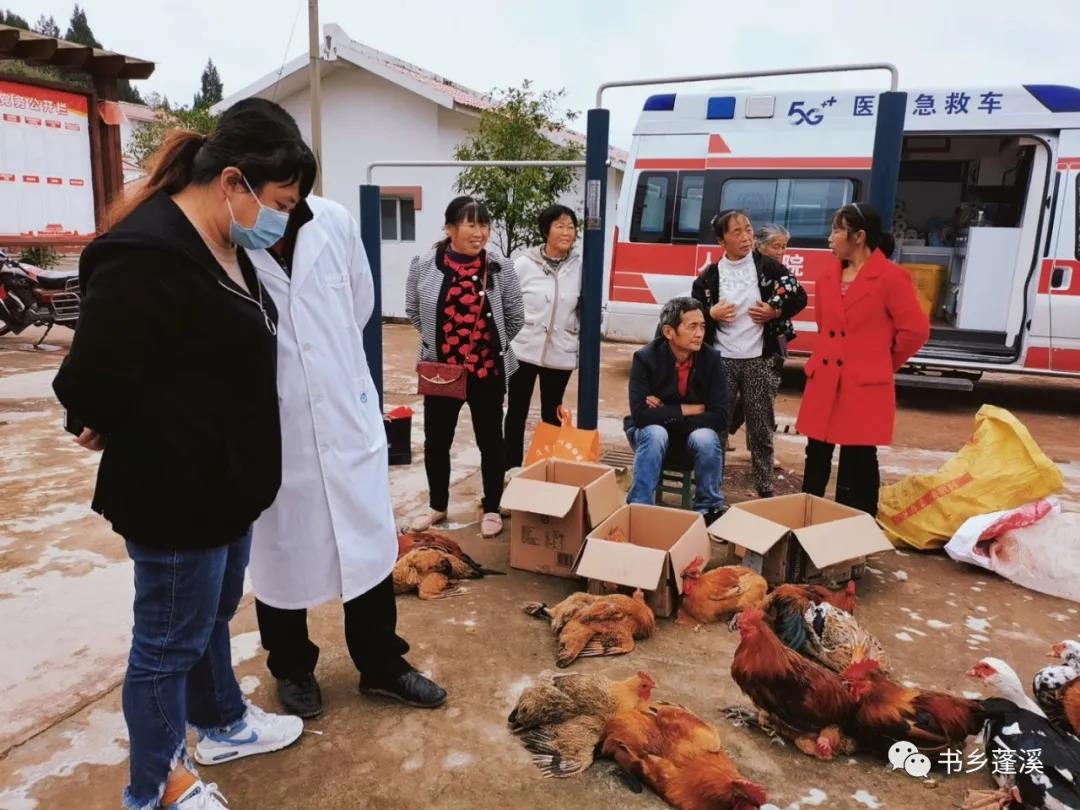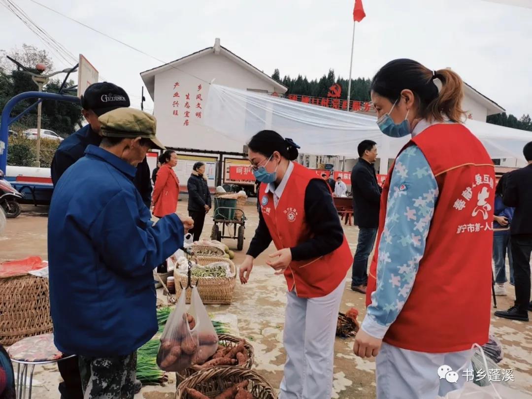 在小集市的一角,来自任隆中心卫生院、身着白大褂为贫困群众免费体检的医生成为了集市上一道与众不同的风景线。售卖完自己的农副产品,还可以接受免费常规健康检查,成为了当天贫困群众又一件高兴事儿。