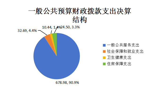 2024年度一般公共预算财政拨款支出746.61万元,主要用于以下方面:一般公共服务支出678.98万元,占90.9%;社会保障和就业支出32.69万元,占4.4%;卫生健康支出10.44万元,占1.4%;住房保障支出24.50万元,占3.3%。