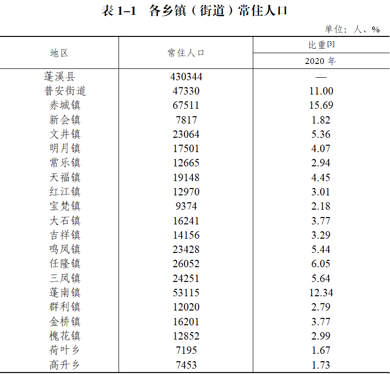 [3]指乡镇(街道)的常住人口占全县常住人口总量的比重。
