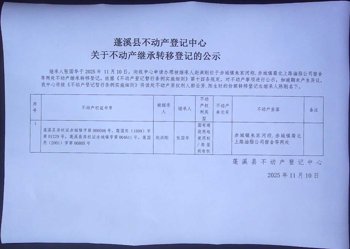 继承转移登记公告(张国华)