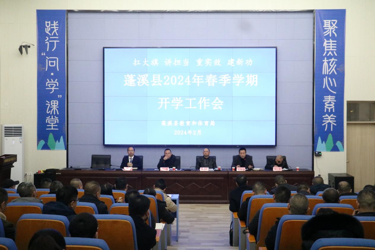 为切实做好2024年春季开学准备,全面部署新学期各项工作,2月23日,蓬溪县教体系统在问陶实小学术报告厅召开主题为“扛大旗 讲担当 重实效 建新功”的2024年春季学期开学工作会。县委教育工委副书记杜章主持会议,县委教育工委书记、县教育体育局党组书记、局长杜志凌出席会议并讲话。