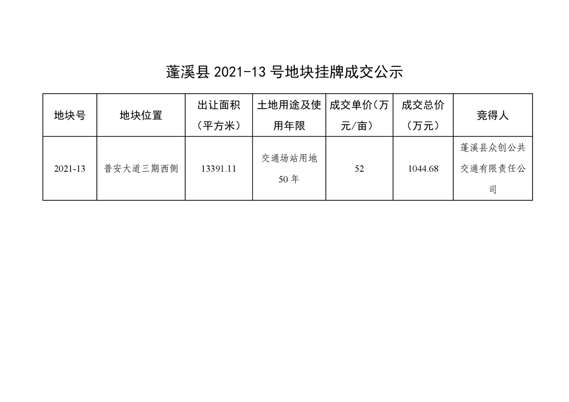 蓬溪县2021-13地块挂牌成交公示
