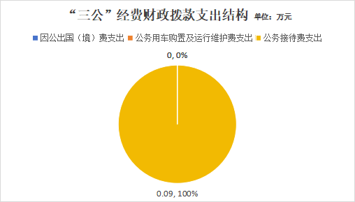 2023年度“三公”经费财政拨款支出决算中,因公出国(境)费支出决算0万元,占0%;公务用车购置及运行维护费支出决算0万元,占0%;公务接待费支出决算0.09万元,占100%。具体情况如下: