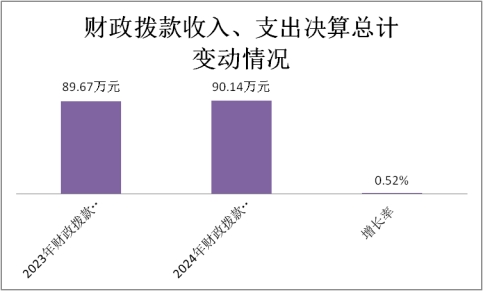 2024年度财政拨款收、支总计均为90.14万元。与2023年相比,财政拨款收入、支出各增加0.47万元,增长0.52%。主要原因是人员经费增加。