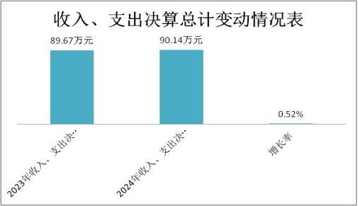 2024年度收、支总计均为90.14万元。与2023年相比,收、支总计各增加0.47万元,增长0.52%。主要原因是人员经费增加。