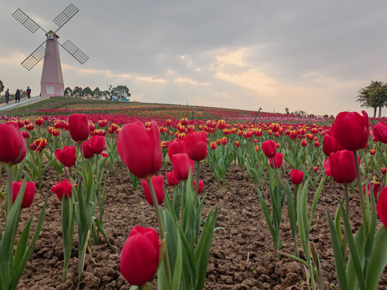 走进天福万象农博园,一阵花香伴着春风迎面扑来,园区里郁金香俏丽争艳,蔓延成一片五彩斑斓的花海,一朵朵郁金香红得似火,黄得如金,粉得赛桃,紫得若兰,美不胜收。放眼望去,油画般的郁金香,自带“春色”滤镜,每一处景致,都温柔缱绻,期待与你相约在这个色彩斑斓的春天。